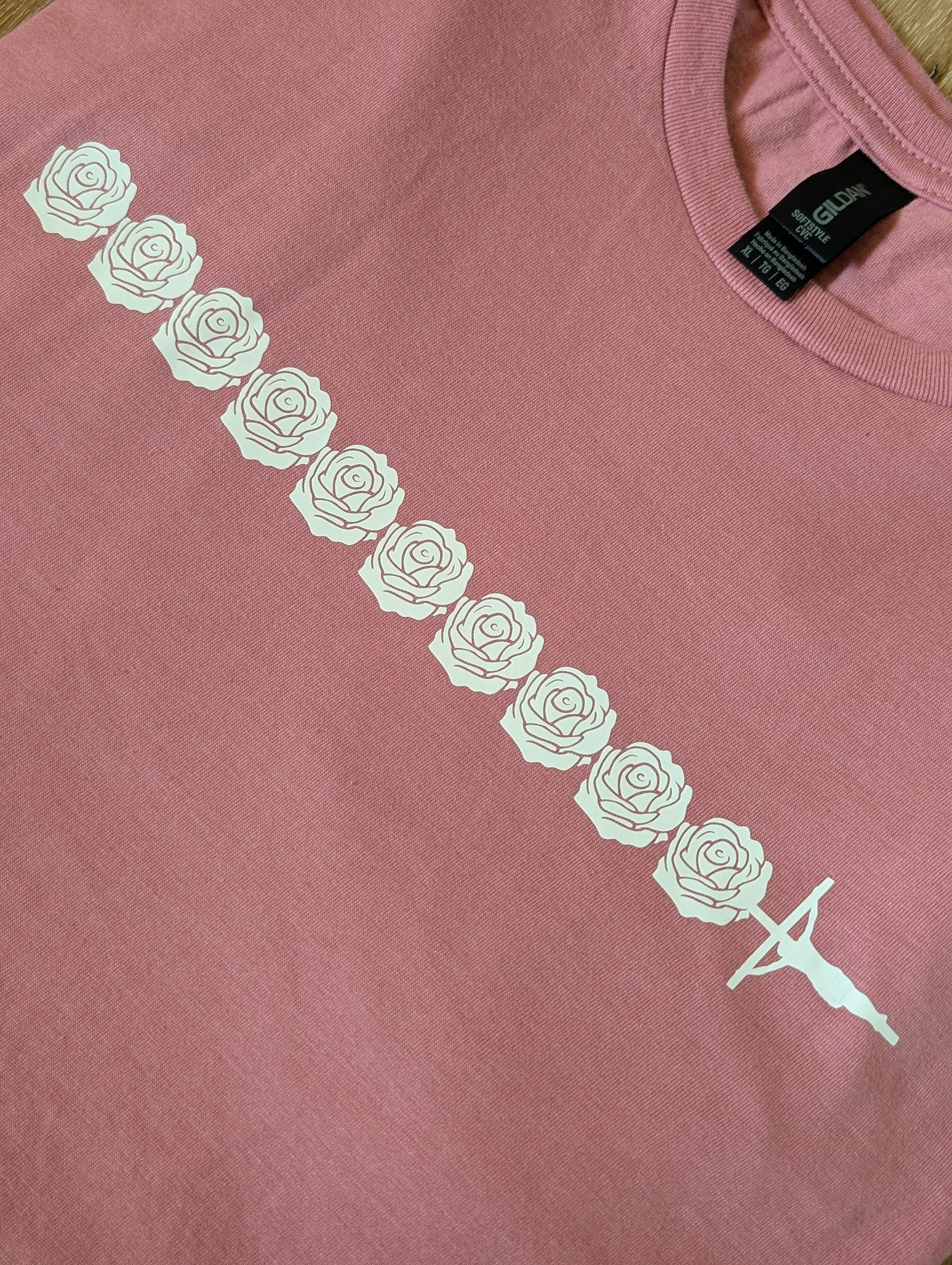Wear your devotion with grace and simplicity in this soft and comfortable crewneck t-shirt, made with premium iron-on vinyl. Across the chest, a single decade of the rosary is beautifully displayed—each bead represented by a rose, leading to a delicate crucifix at the end.